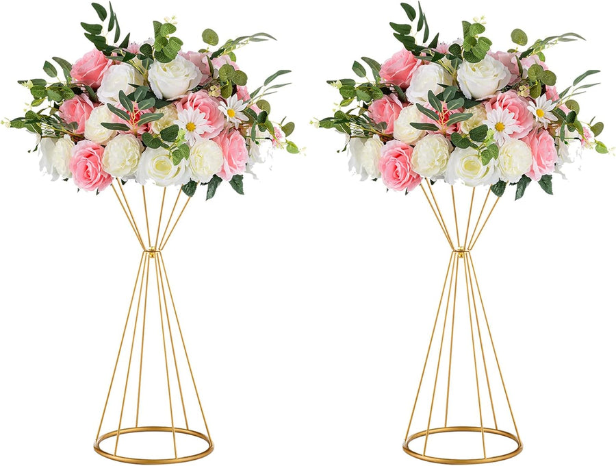 Nuptio 2 Stück Metall Blumenboden Vase Blumenständer Geometrische Mittelstücke Vase für Tische, 40cm