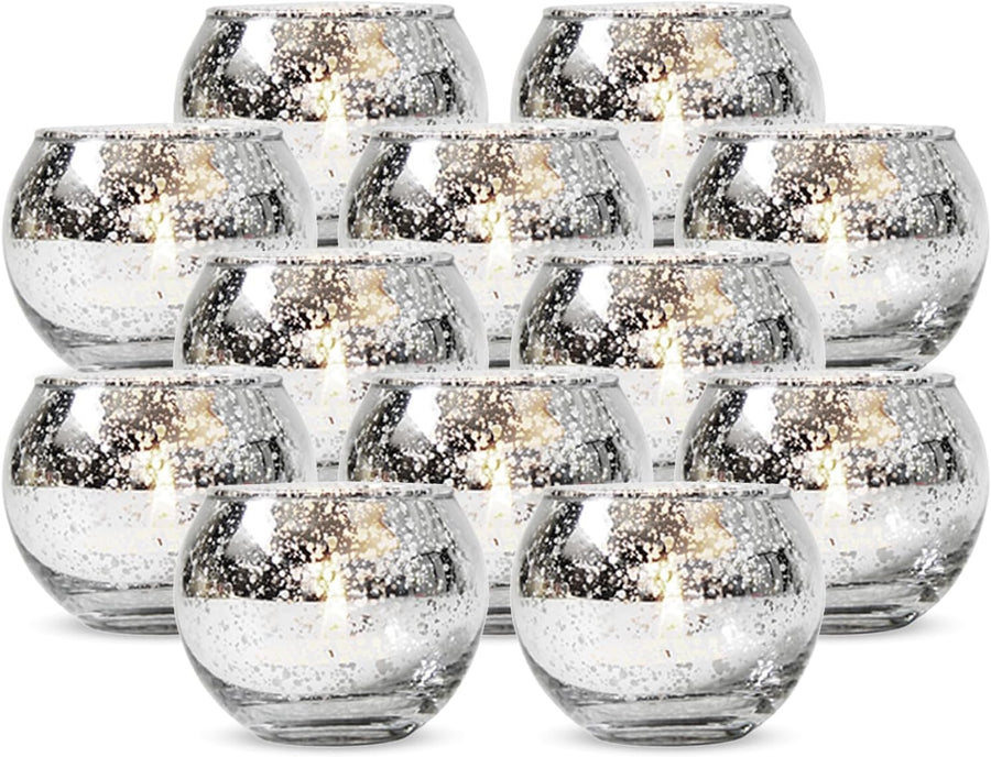 12 Stück Runde Quecksilber Votive Kerzenhalter - Aus Quecksilberglas Mit Einem Gesprenkelten Silber