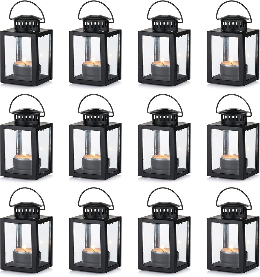 Laternen für Kerzen Gartenlaternen, Vintage Stil Hängen Kleine Laternen für Teelicht Kerze, Schwarze