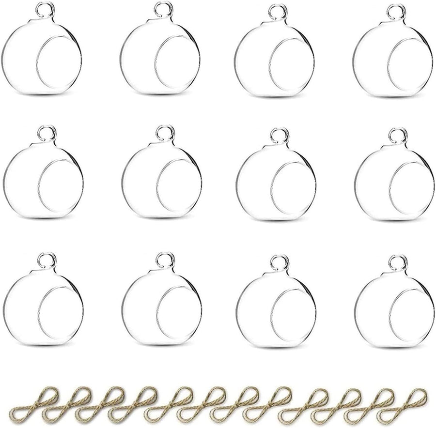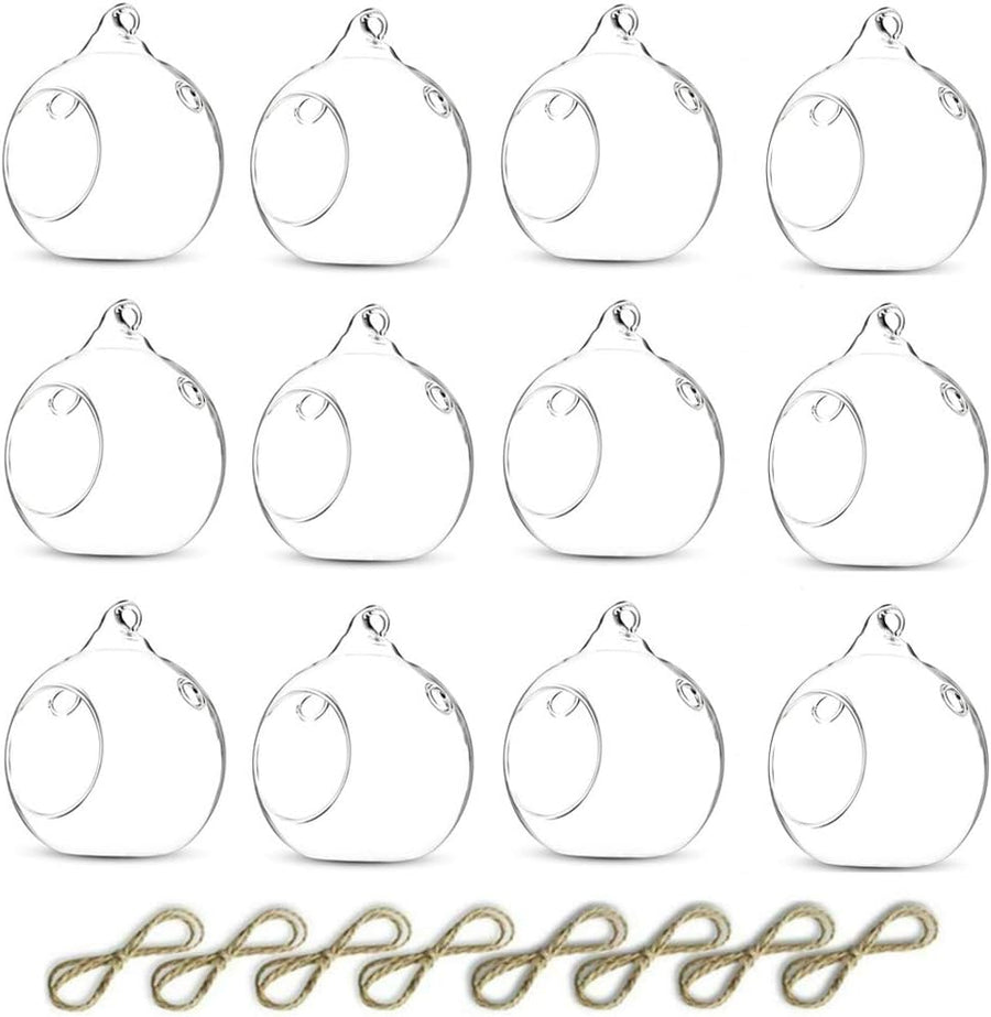 NUPTIO 12 Stück Hängende Teelichthalter Mini Glaskerzenhalter 6cm Durchmesser Kugeln Globus Garten O