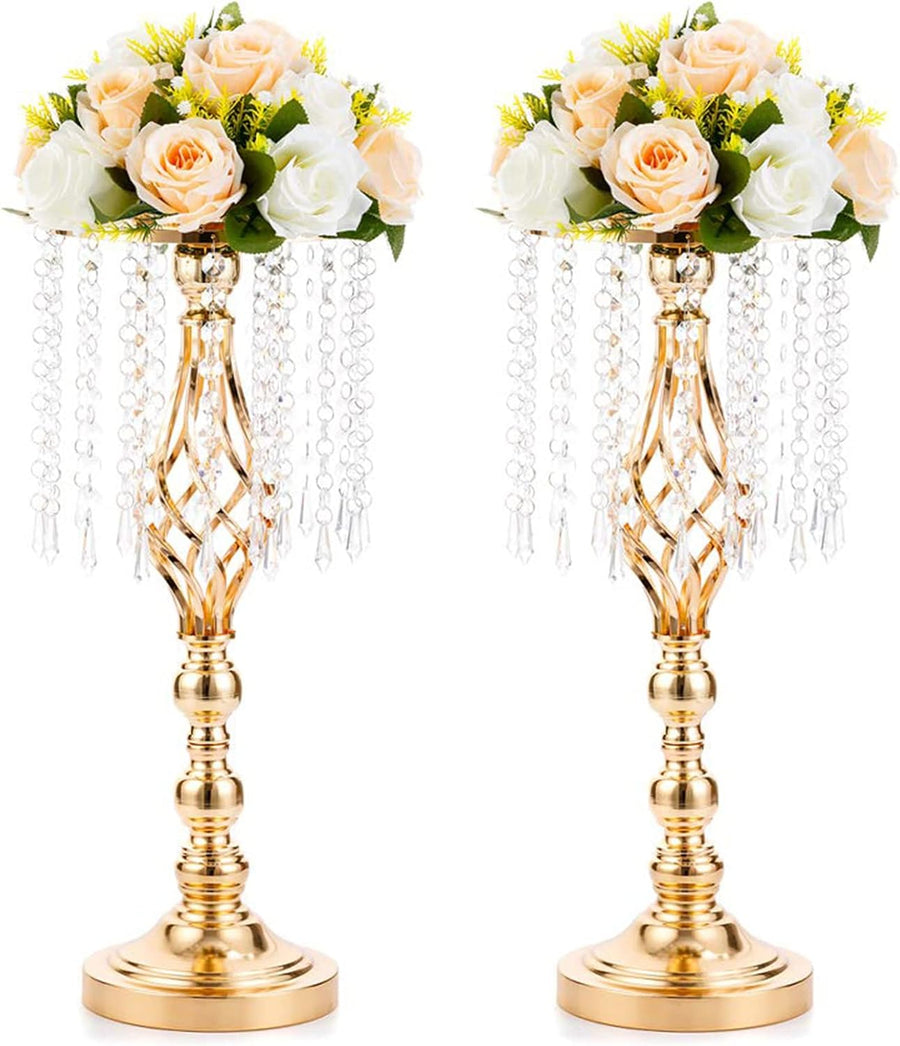NUPTIO 2 Stück Hochzeitsmittelstücke für Tische, 60cm Hohe Goldvasen Als Herzstück, Kristallmetallva