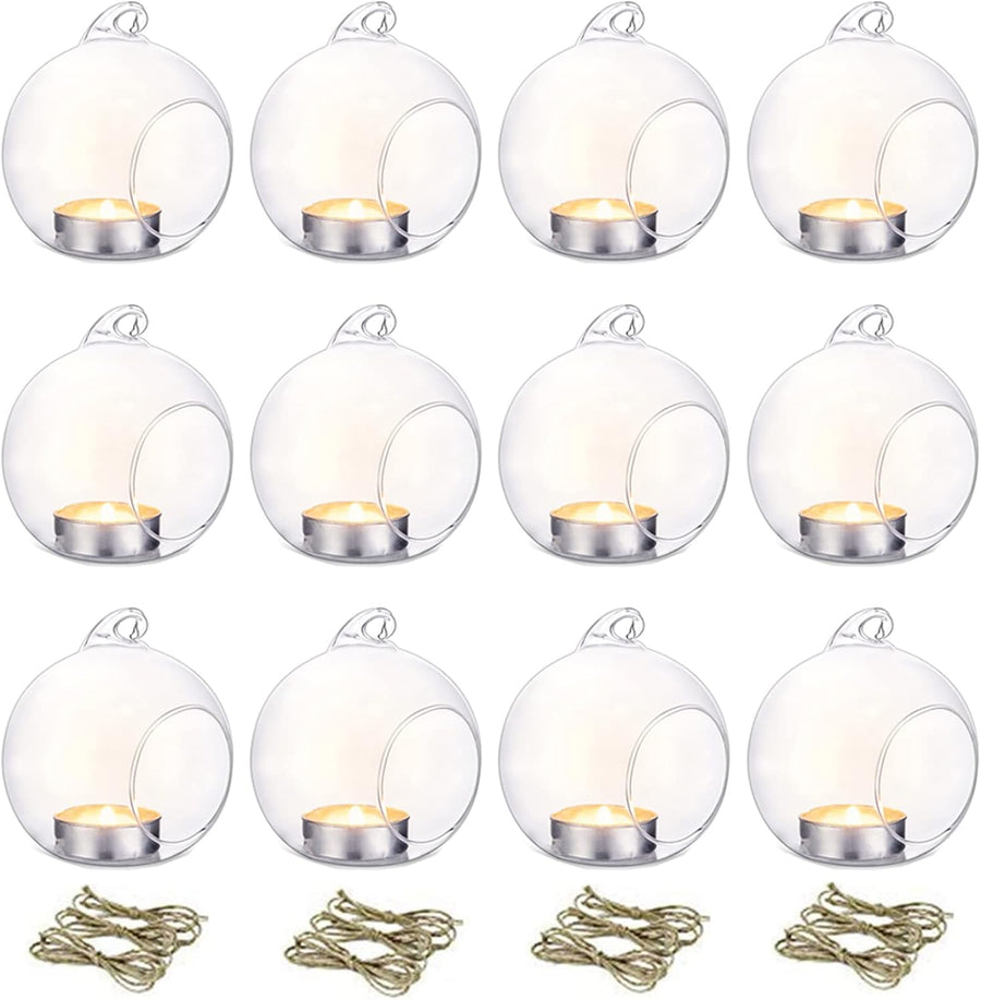 NUPTIO 12 Stücke 8cm Hängen Glaskugel Teelicht Kerzenhalter Hause Hochzeit Mittelstücke Decor Garten