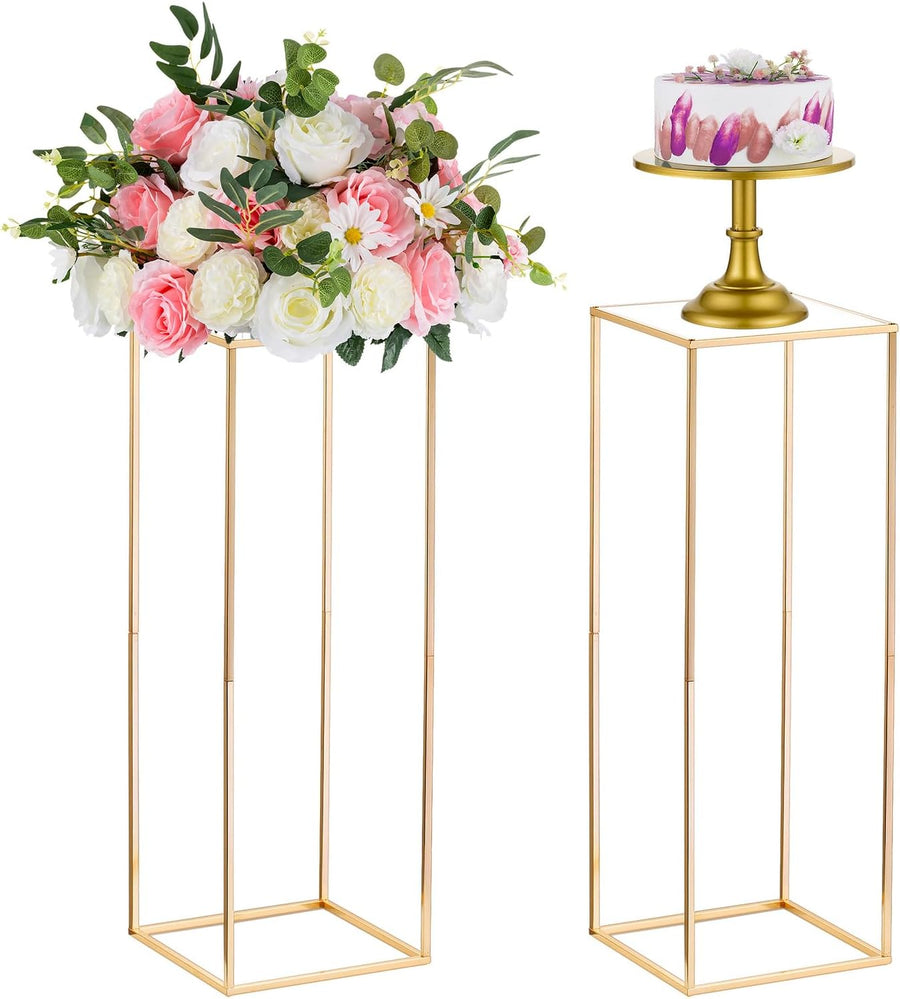 Nuptio 2 Stück Hochzeit Mittelstücke Goldvasen 60cm Hoch Blumenständer Metall Bodenvase Säule Geomet