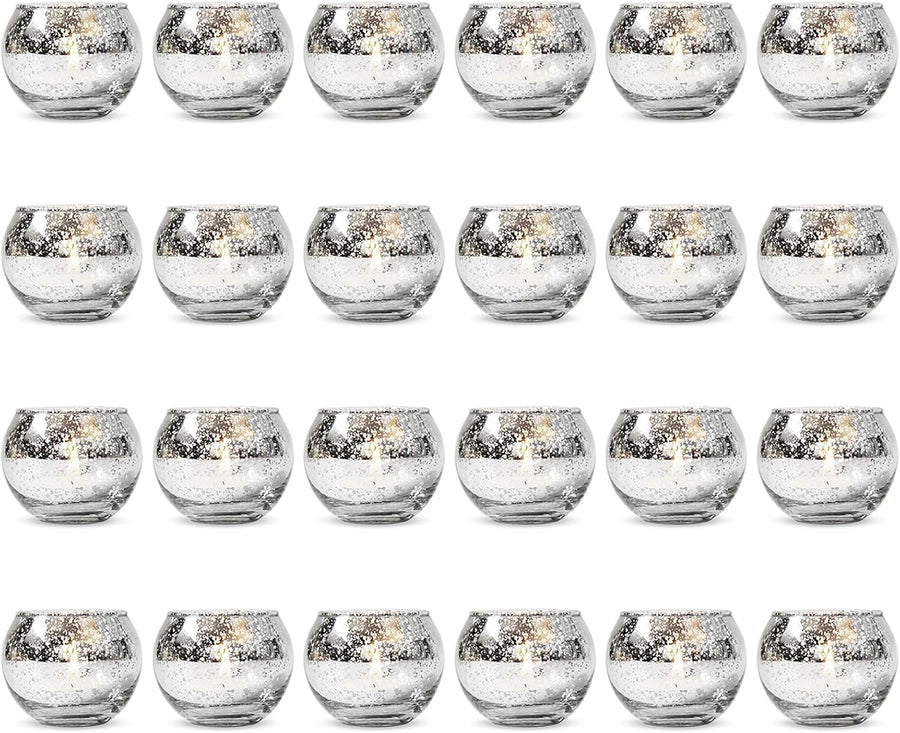 24 Stück Runde Quecksilber Votive Kerzenhalter - Aus Quecksilberglas Mit Einem Gesprenkelten Silber