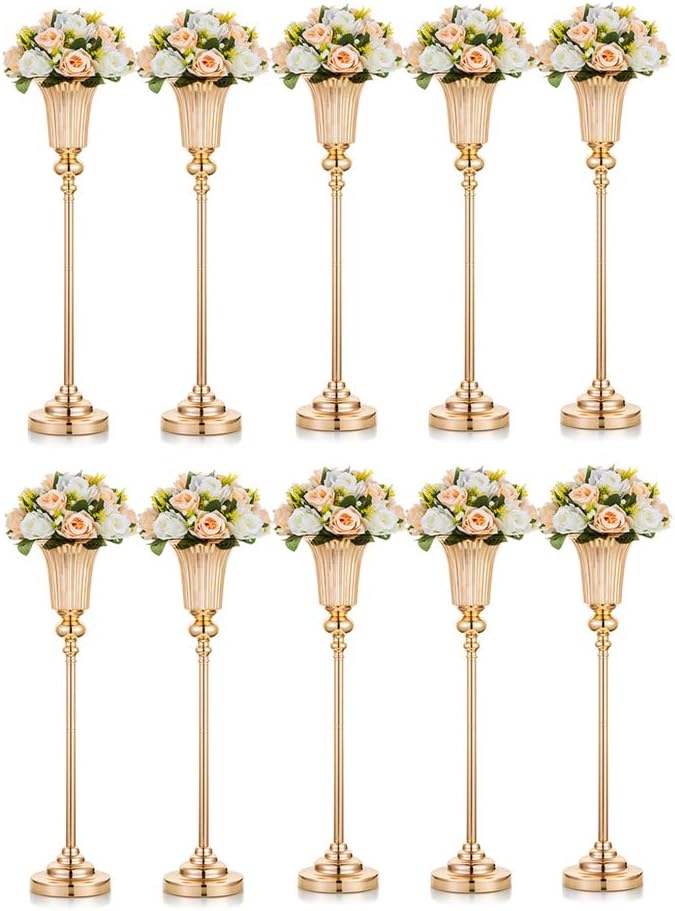 Nuptio 10 Stück Goldvasen für Hochzeit Herzstück Tische, Metall Blumenboden Vase Säule Blumenständer