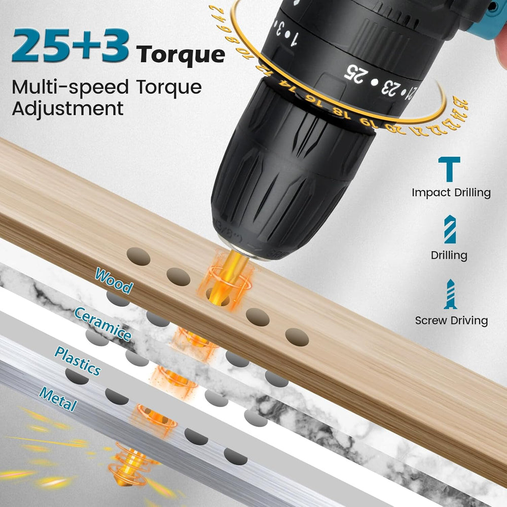 Akku Bohrschrauber Set 21V: Akkubohrer mit 2 Akkus 2000mAh,42Nm Max Drill Set 25+3 Paar, 24 Stück Bo