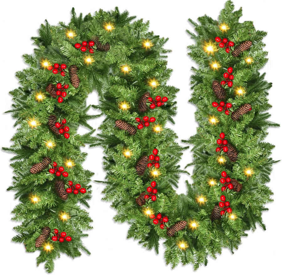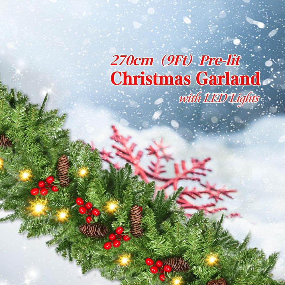 Tannengirlande mit Beleuchtung - 270cm Weihnachtsgirlande mit Beleuchtung 4m 30pcs Warmen LED Lichte