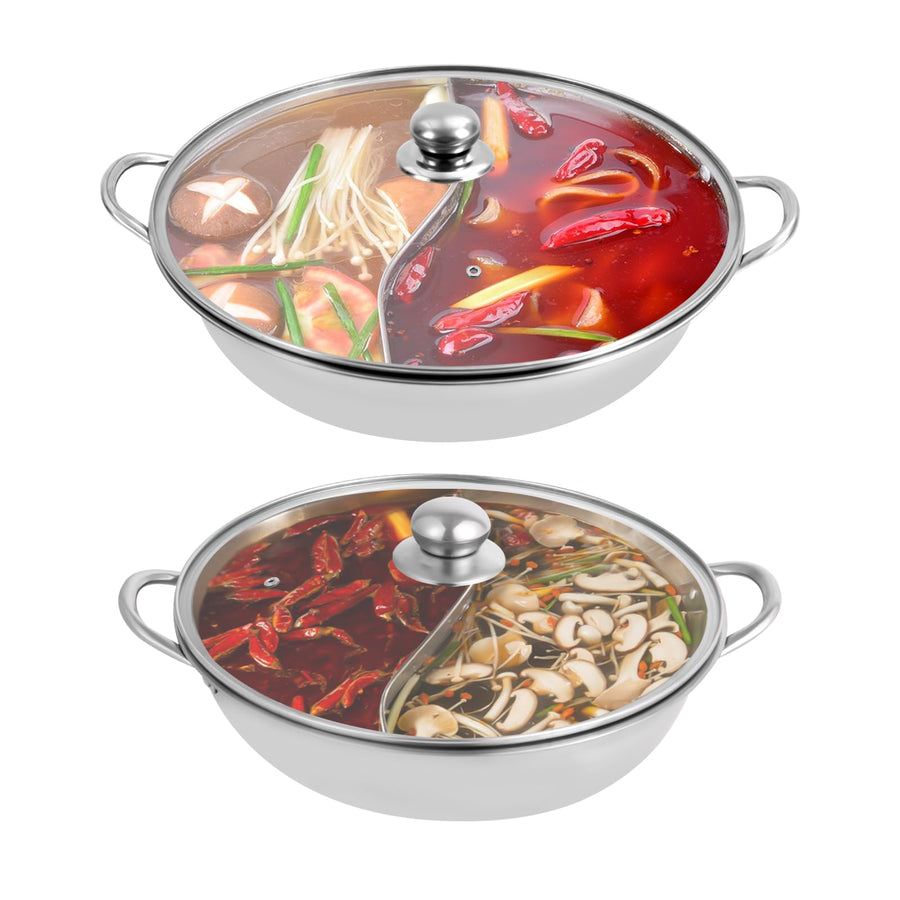 Hot Pot mit Teiler, 304 Edelstahl Topf Hotpot Kocher mit Glasdeckel, Kochtopf-Set für Induktionsherd
