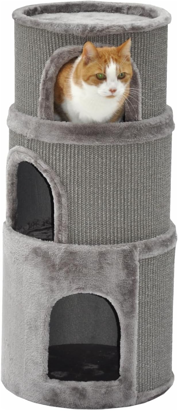 nanook Kratztonne, Höhe 89 cm, 3-teilig, Spieltonne für Katzen, 3 Ebenen, Kratzbaum, Kratzturm aus S