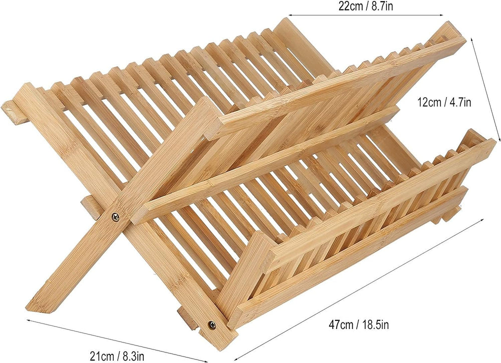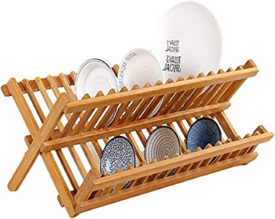 Natudeco 2-stöckiges Bambus-Holz-Geschirrregal, zusammenklappbares Geschirr-Trockengestell, Abtropfg