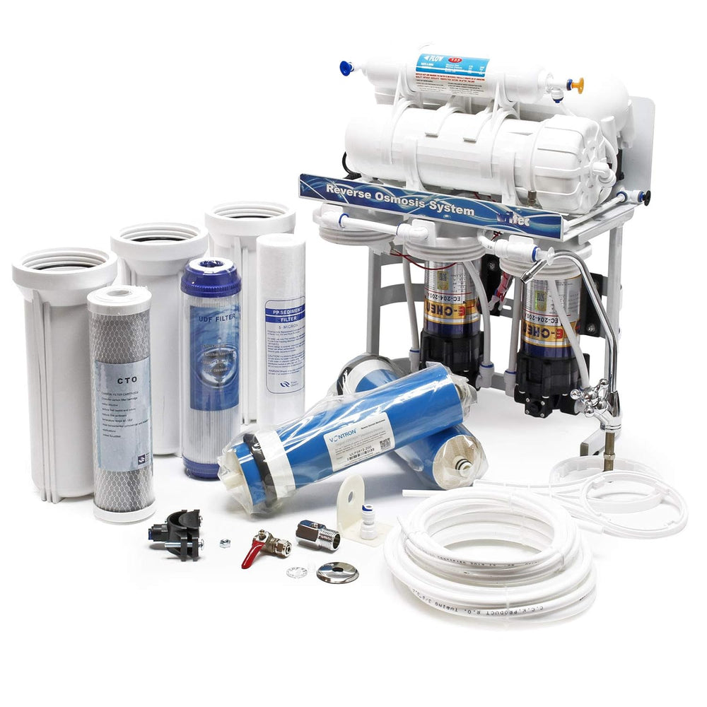 Naturewater 6 Stufen Umkehrosmose RO 180 L/Tag mit UV Klärer und Druckerhöhungspumpe