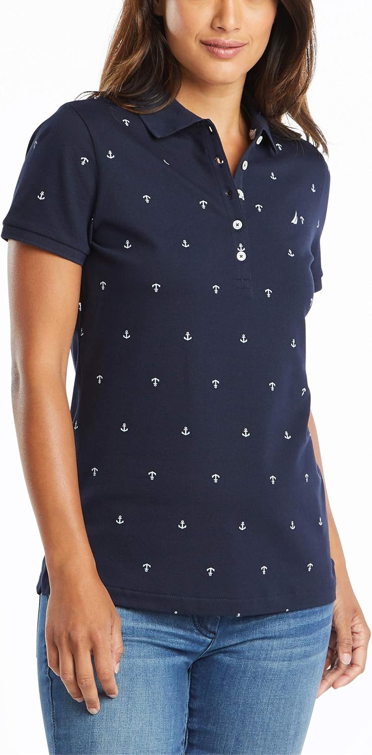 Nautica Damen Anchor Short Sleeve Breathable Stretch Cotton Polo Shirt Poloshirt S Navy, S Navy