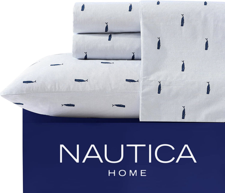 Nautica Bettwäsche-Set für Doppelbett, Baumwoll-Perkal-Bettwäsche-Set, Küstendekoration (Wal gestrei