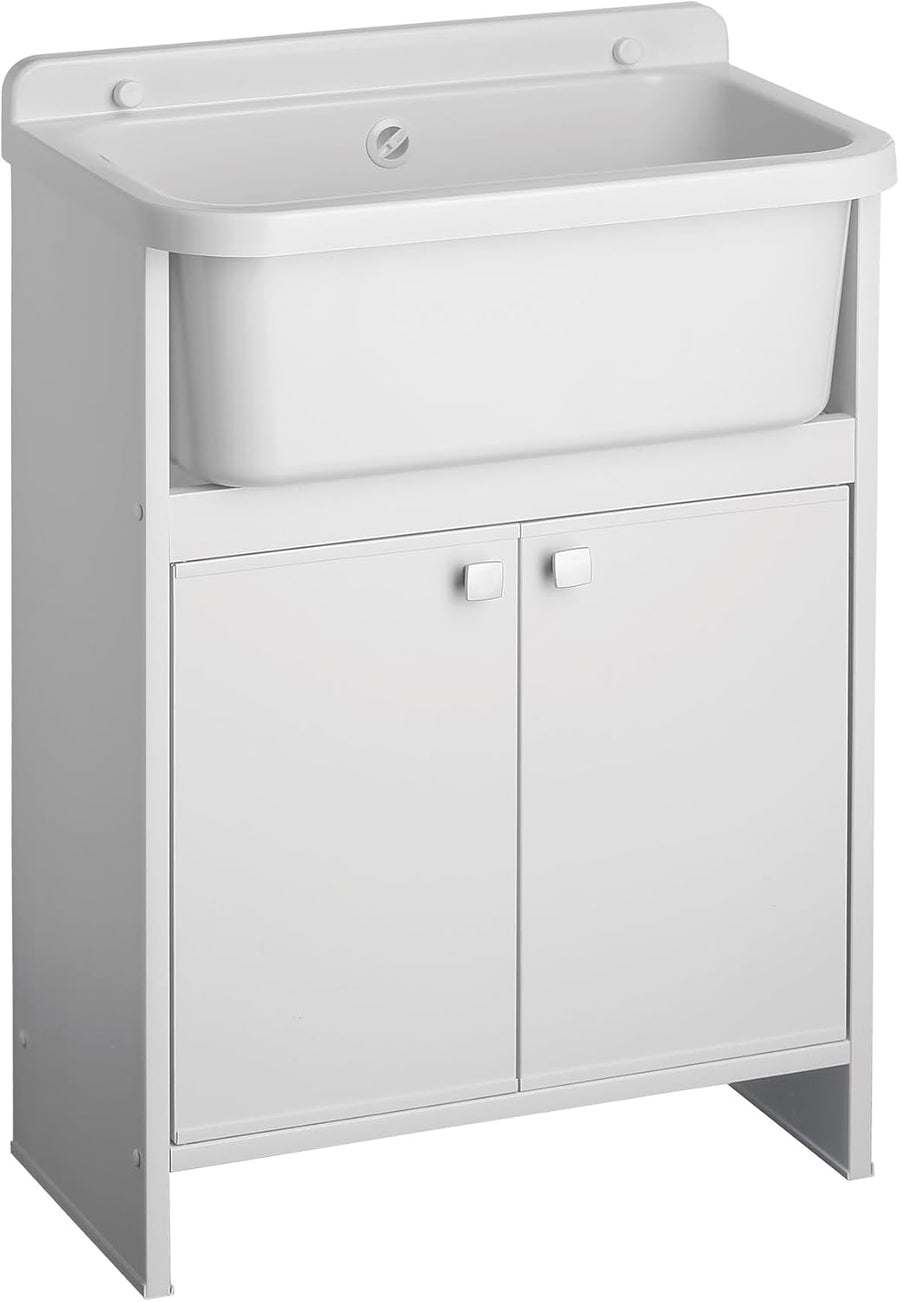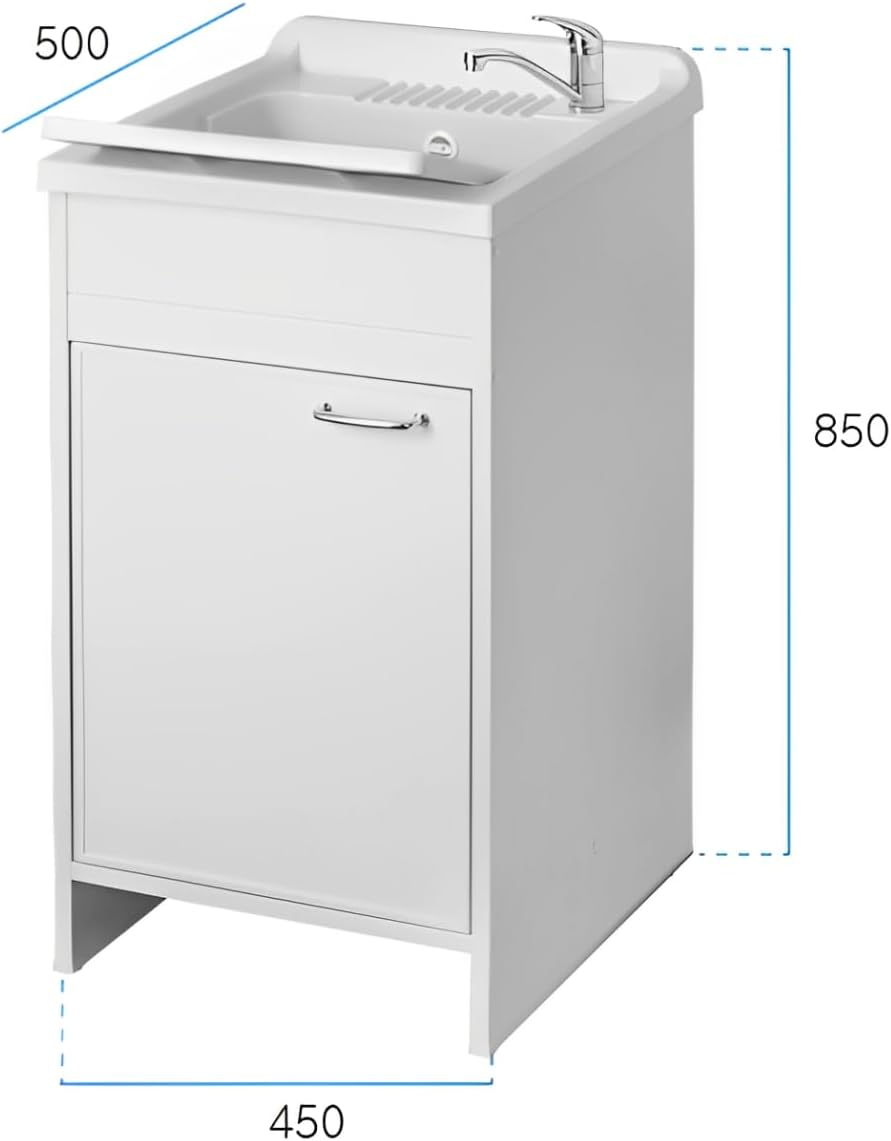Negrari 9006K Waschtrog / Waschbecken aus Harz, für Innen-/Aussenbereich, 45 x 50 x 87 cm , Weiss, 4