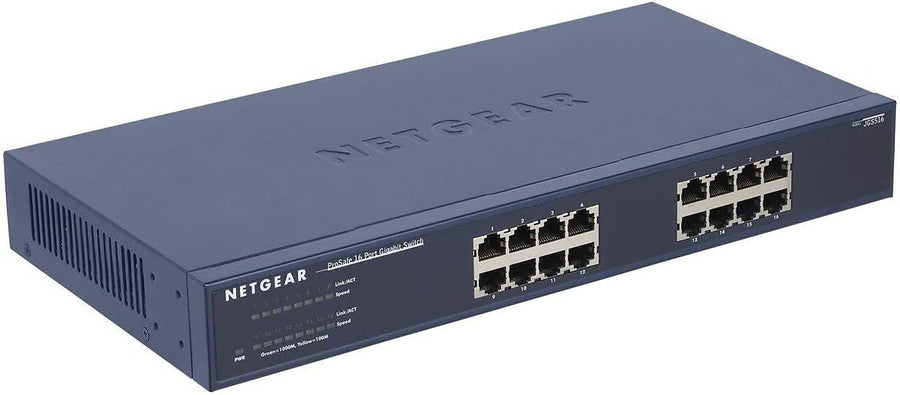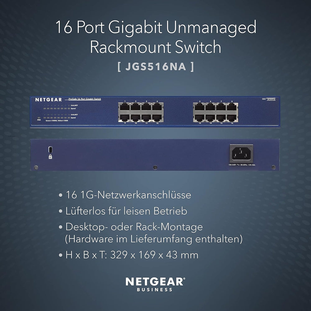 Netgear JGS516 Switch 16 Port Gigabit Ethernet LAN Switch (Plug-and-Play Netzwerk Switch 19 Zoll Rac