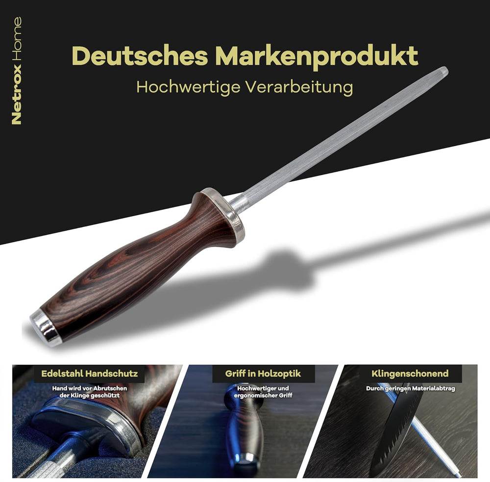 NetroxHome® Premium Messerschärfer Wetzstahl zum Messer schärfen | gehärteter Stahl | Hochwertiger S