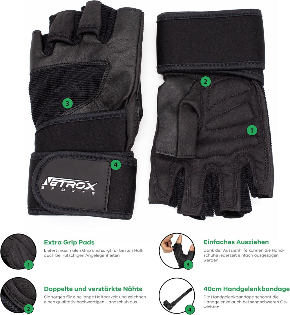 NetroxSports® – Trainingshandschuhe mit Handgelenkstütze für Bodybuilding, Gewichtheben, Krafttraini