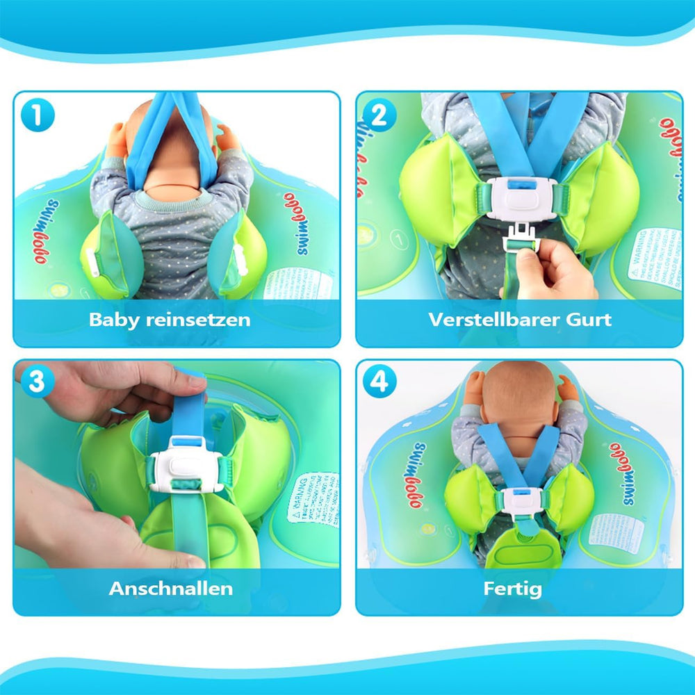 Baby Schwimmring Kinderschwimmhilfe geeignet für Kinder von 3 Monate bis 4 Jahre mit Sonnendach Blau