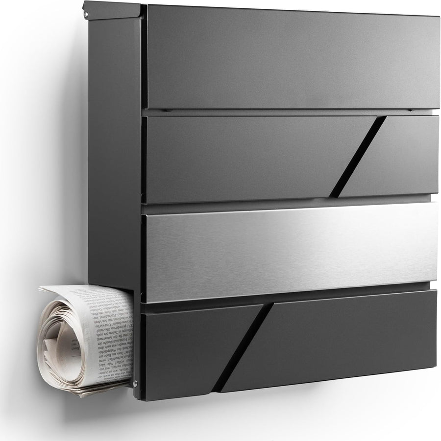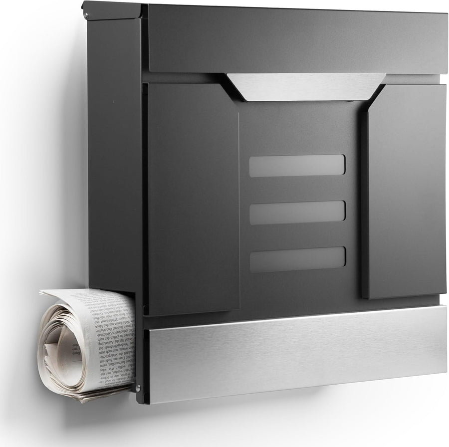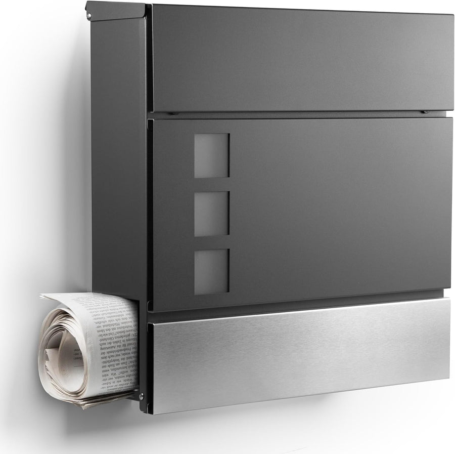 NewHabitat I Moderner Briefkasten Anthrazit mit Zeitungsfach - Wandbriefkasten Rostfrei und UV-bestä