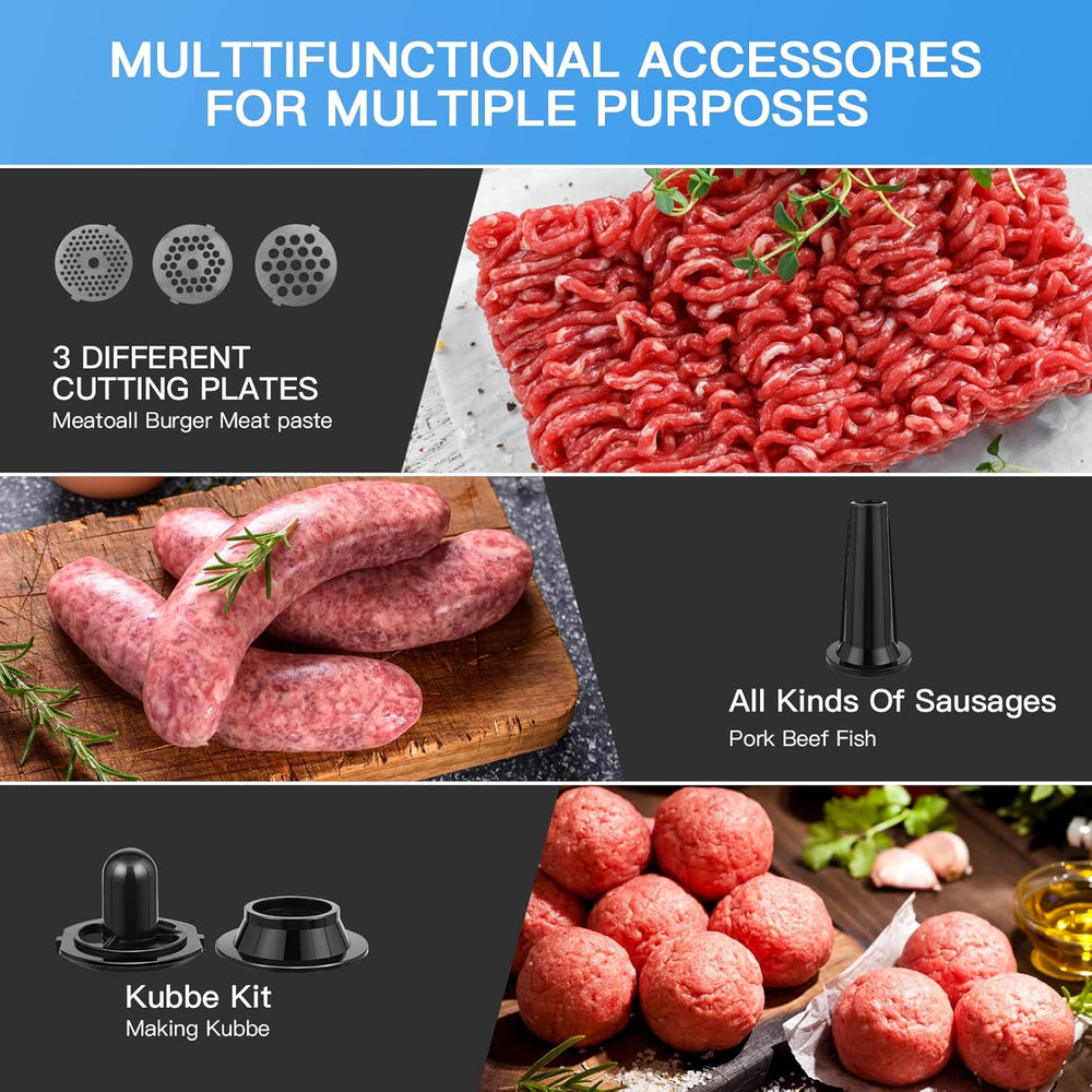 Elektrischer Fleischwolf 2000W, Wurstfüller Multi Küchenmaschine, Wurstmacher mit 3 Mahlplatten und