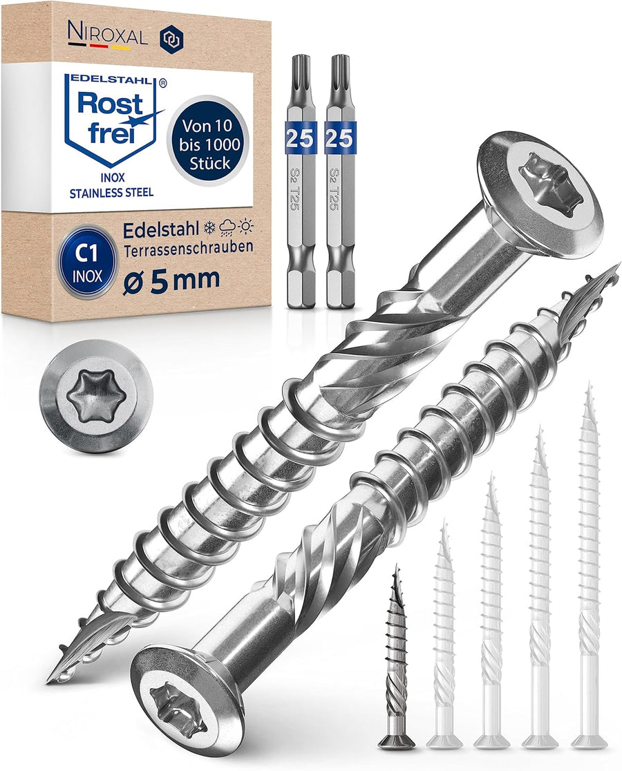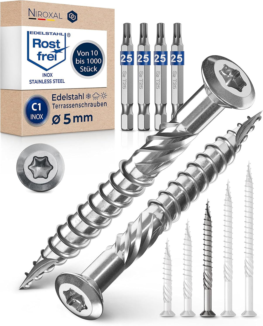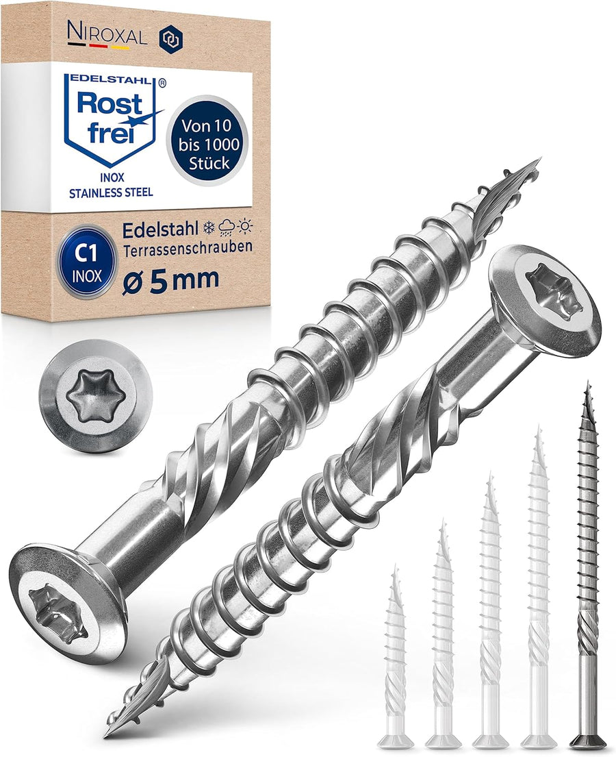 1000 Stück Terrassenschrauben 5 x 50 mm lang | PERFEKT für 20 mm Terrassendielen | rostfreier gehärt
