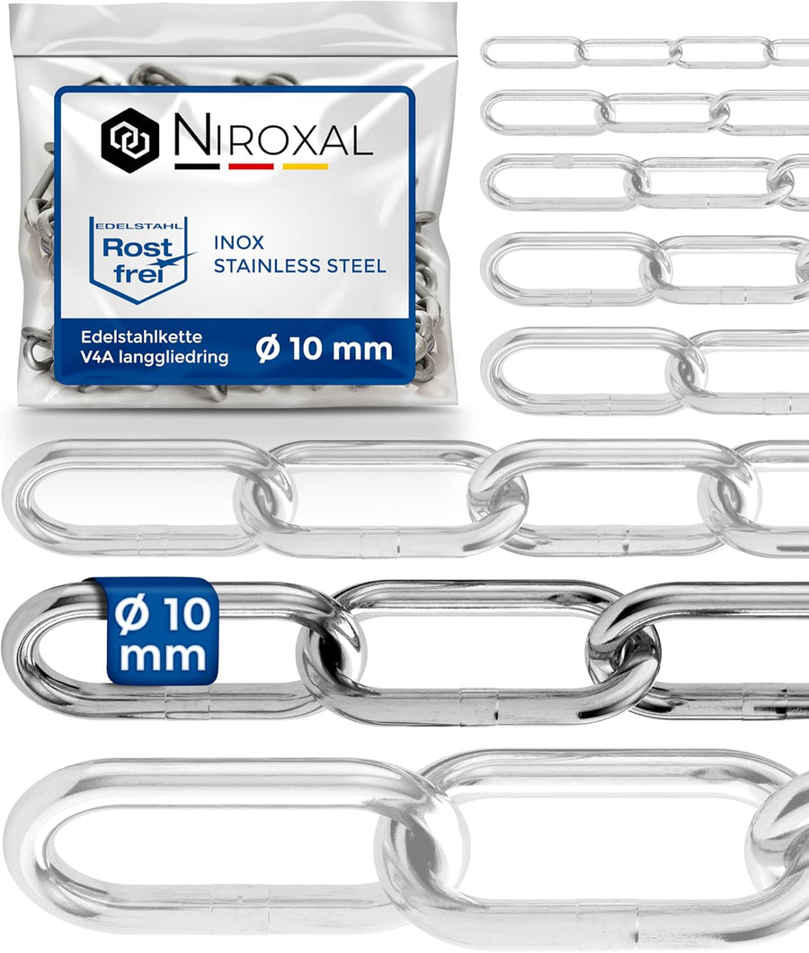 25cm = 0,25 Meter 10mm starke Ankerkette Meterware V4A Schaukel Ketten langgliedrig am Stück A4 Edel
