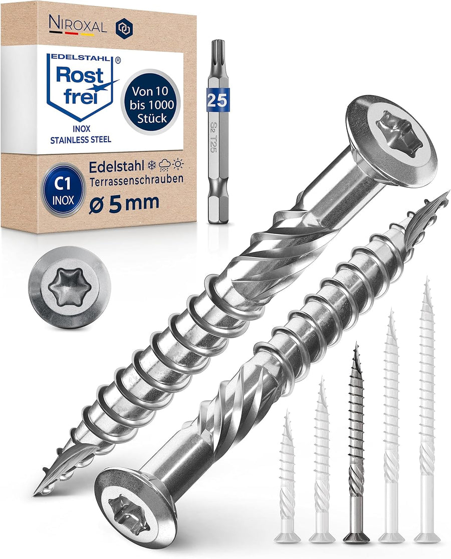 1000 Stück Terrassenschrauben 5 x 60 mm lang | PERFEKT für 25 mm Terrassendielen | rostfreier gehärt