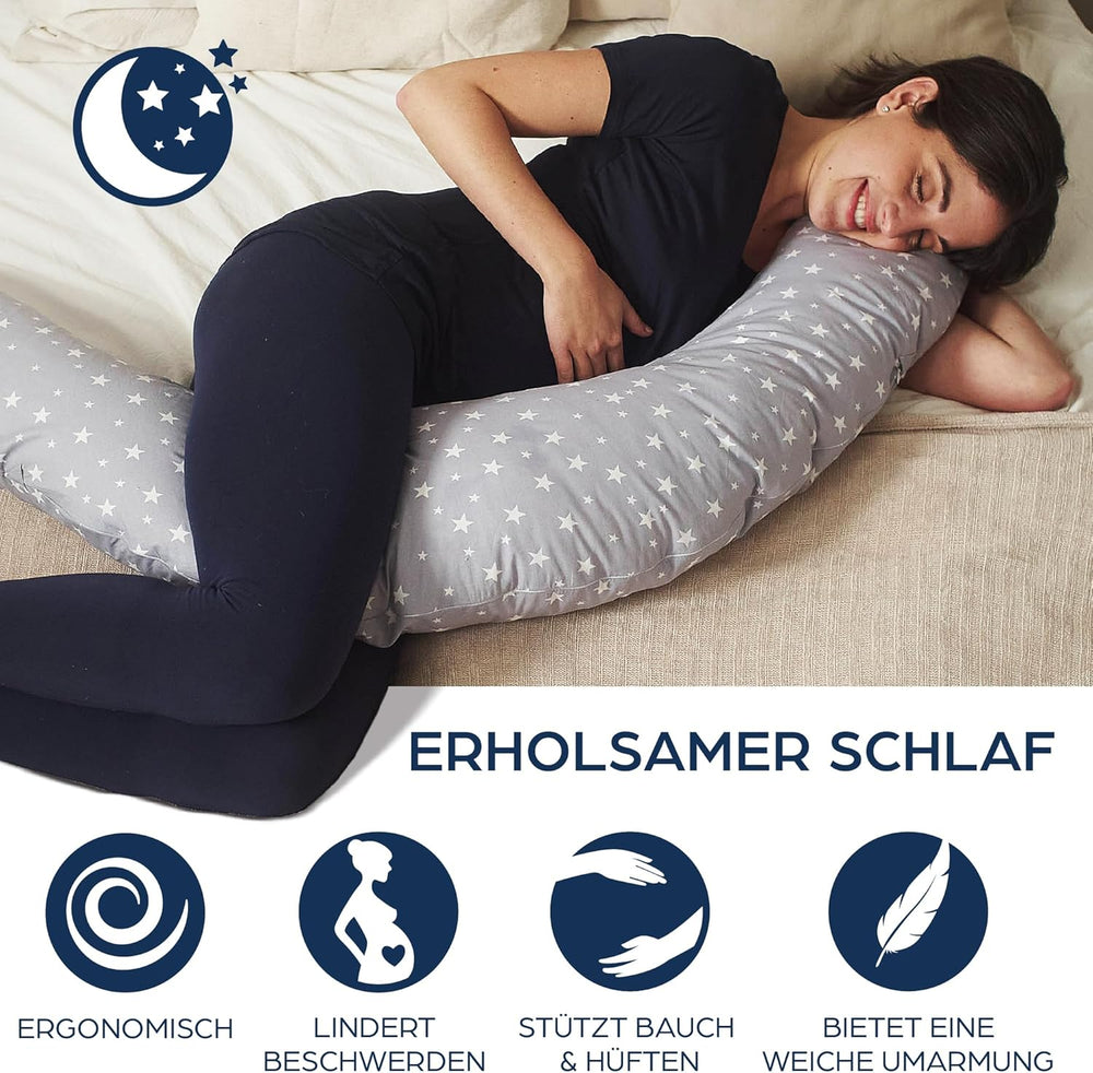 Niimo 2-in-1 XXL Schwangerschaftskissen - Stillkissen Seitenschläferkissen mit Bezug aus 100% Baumwo