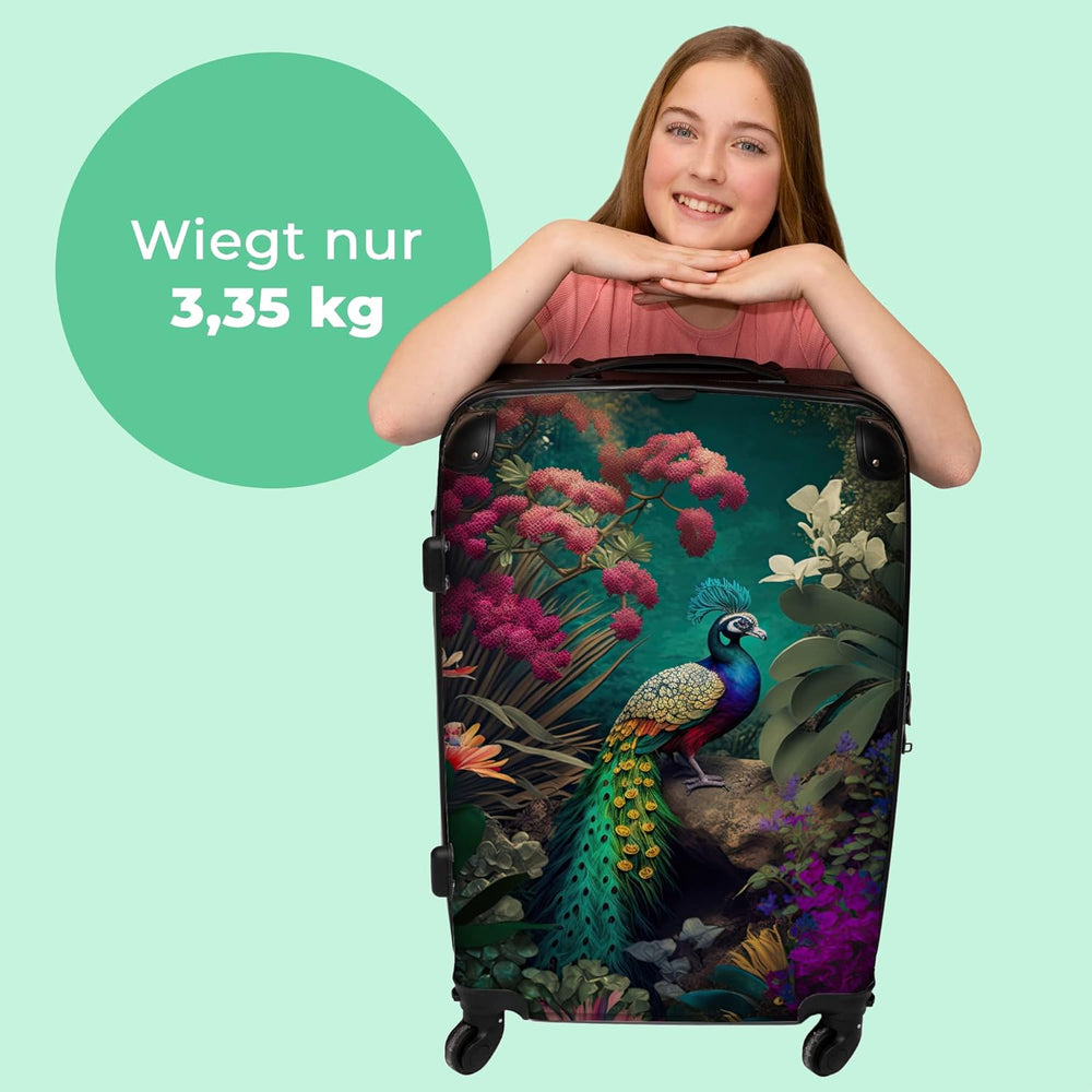 Koffer gross Trolley Rollkoffer Reisekoffer mit 4 Rollen Fotokoffer - Pfau - Federn - Blumen - Vogel