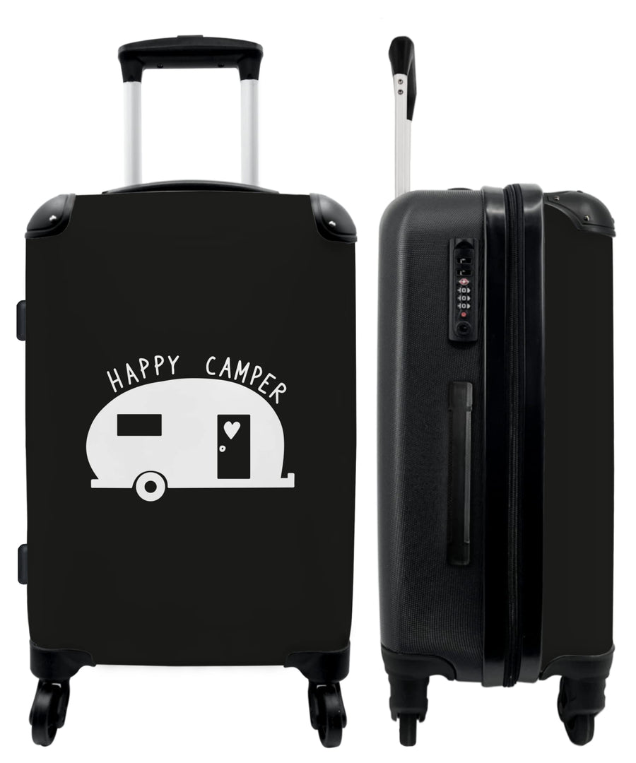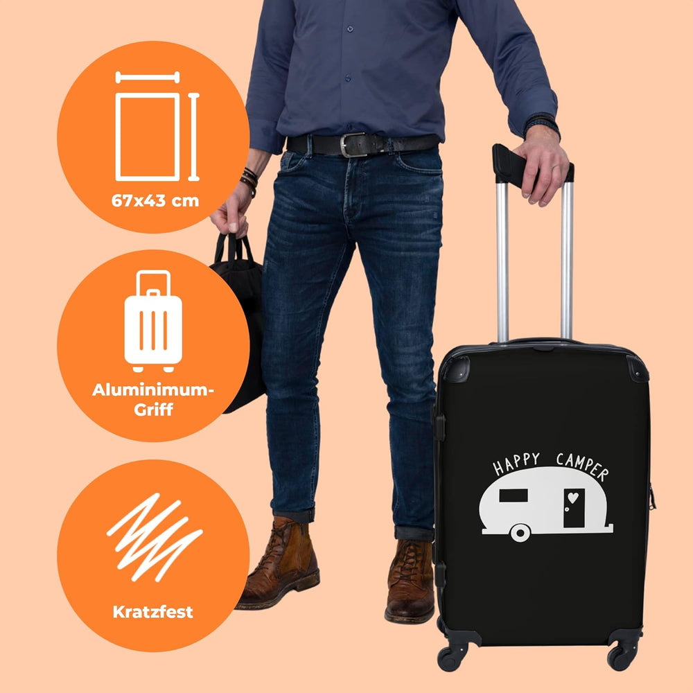 Koffer gross Trolley Rollkoffer Reisekoffer mit 4 Rollen Fotokoffer - Wohnwagen - 'Happy Camper' - S