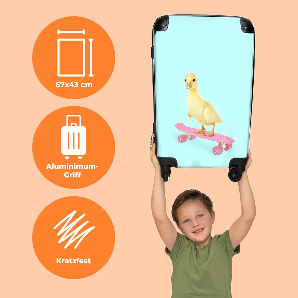 Koffer gross Trolley Rollkoffer Reisekoffer mit 4 Rollen Fotokoffer - Ente - Küken - Skateboard - Bl