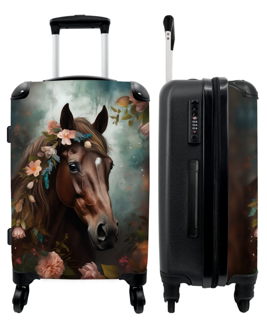 Koffer gross Trolley Rollkoffer Reisekoffer mit 4 Rollen Fotokoffer - Pferd - Natur - Blumen - Tiere