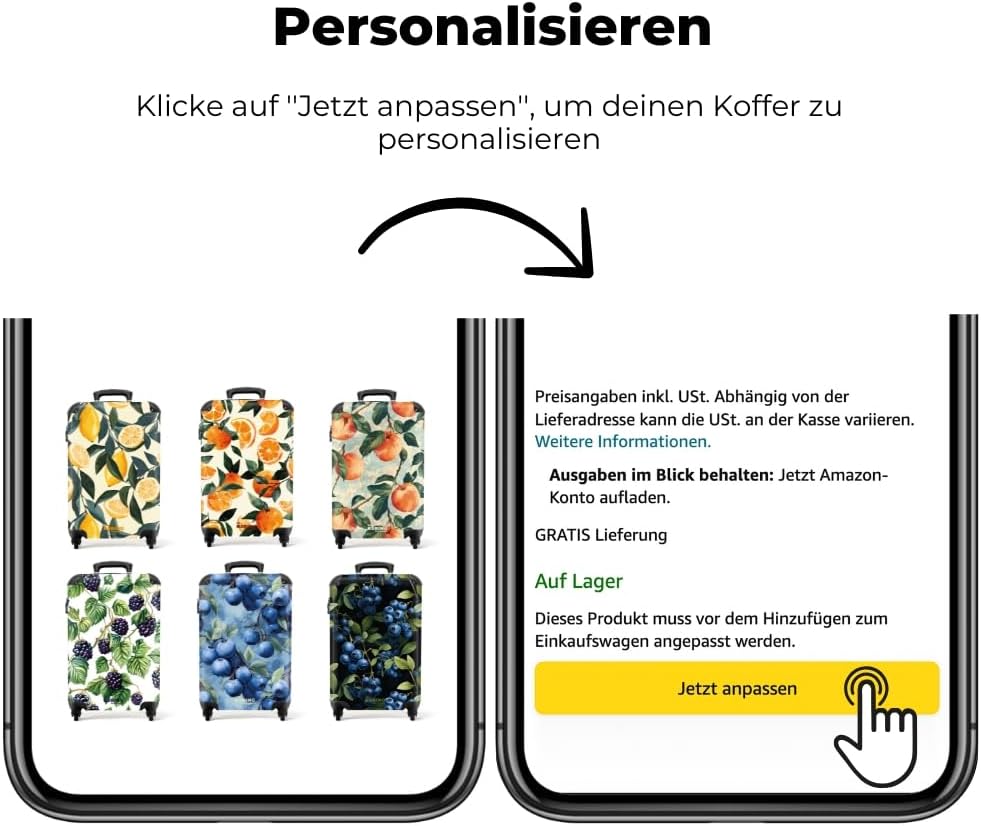 Handgepäck Koffer 55x40x20 Personalisiert - Reisekoffer mit Rollen, Leichtgewicht Hartschalenkoffer,