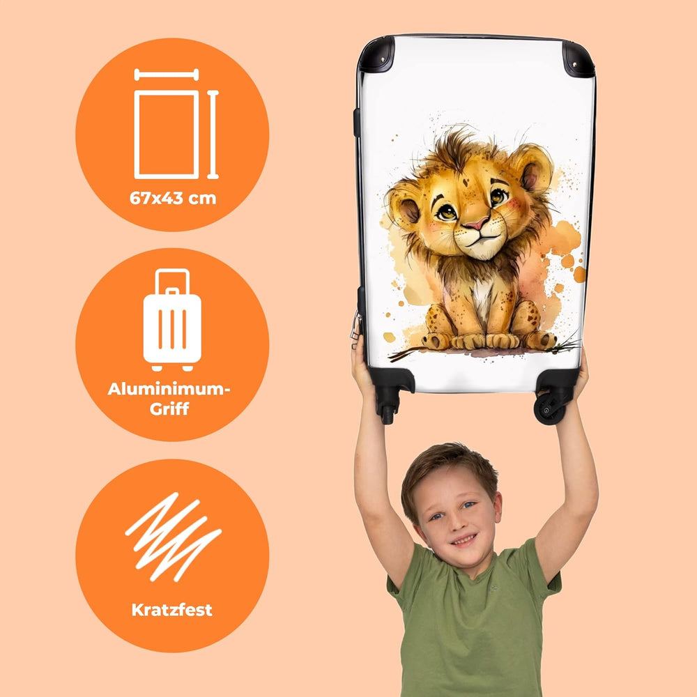 Koffer gross Trolley Rollkoffer Reisekoffer mit 4 Rollen Fotokoffer - Löwe - Aquarell - Braun - Tier