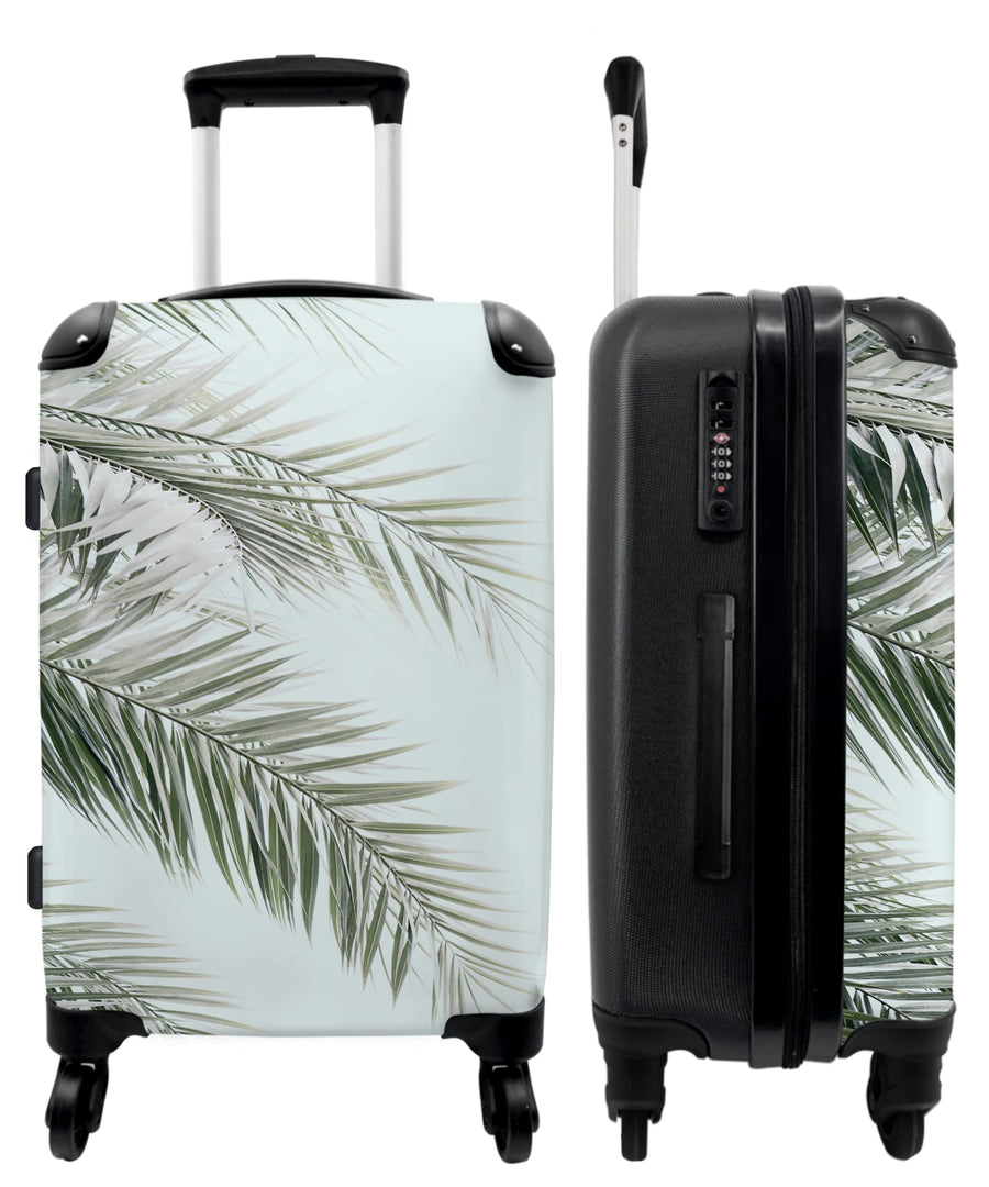 Koffer gross Trolley Rollkoffer Reisekoffer mit 4 Rollen Fotokoffer - Pflanze - Grün - Natur - Blau