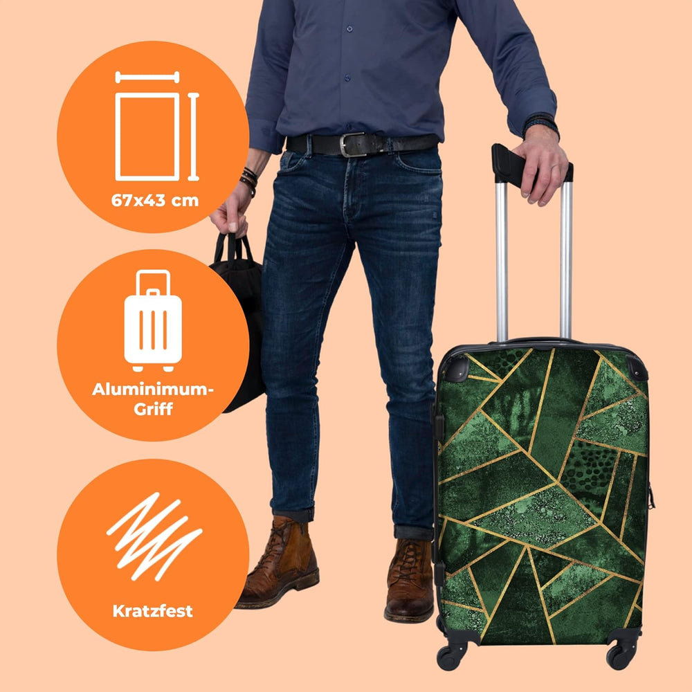Koffer gross Trolley Rollkoffer Reisekoffer mit 4 Rollen Fotokoffer - Muster - Abstrakt - Gold - Grü