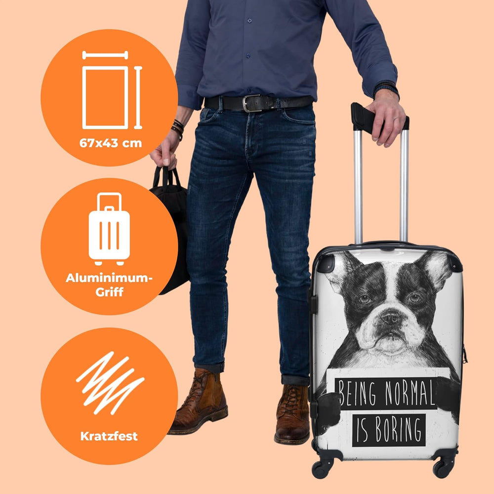 Koffer gross Trolley Rollkoffer Reisekoffer mit 4 Rollen Fotokoffer - Hund - Zeichen - Text - Tiere