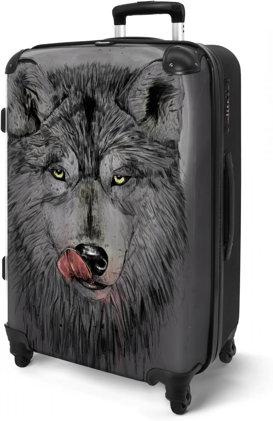Koffer gross Trolley Rollkoffer Reisekoffer mit 4 Rollen Fotokoffer - Wolf - Mond - Tiere - Dunkelhe