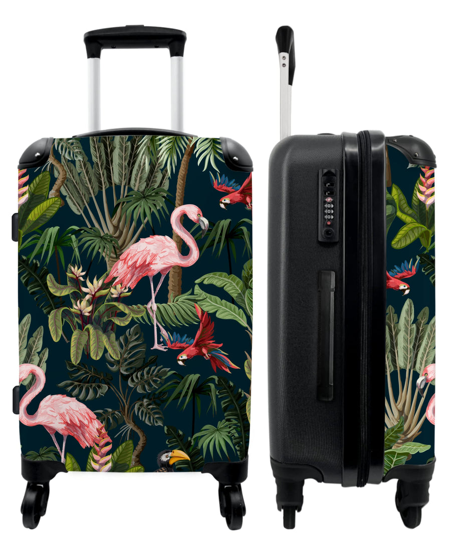 Koffer gross Trolley Rollkoffer Reisekoffer mit 4 Rollen Fotokoffer - Flamingo - Blumen - Dschungel