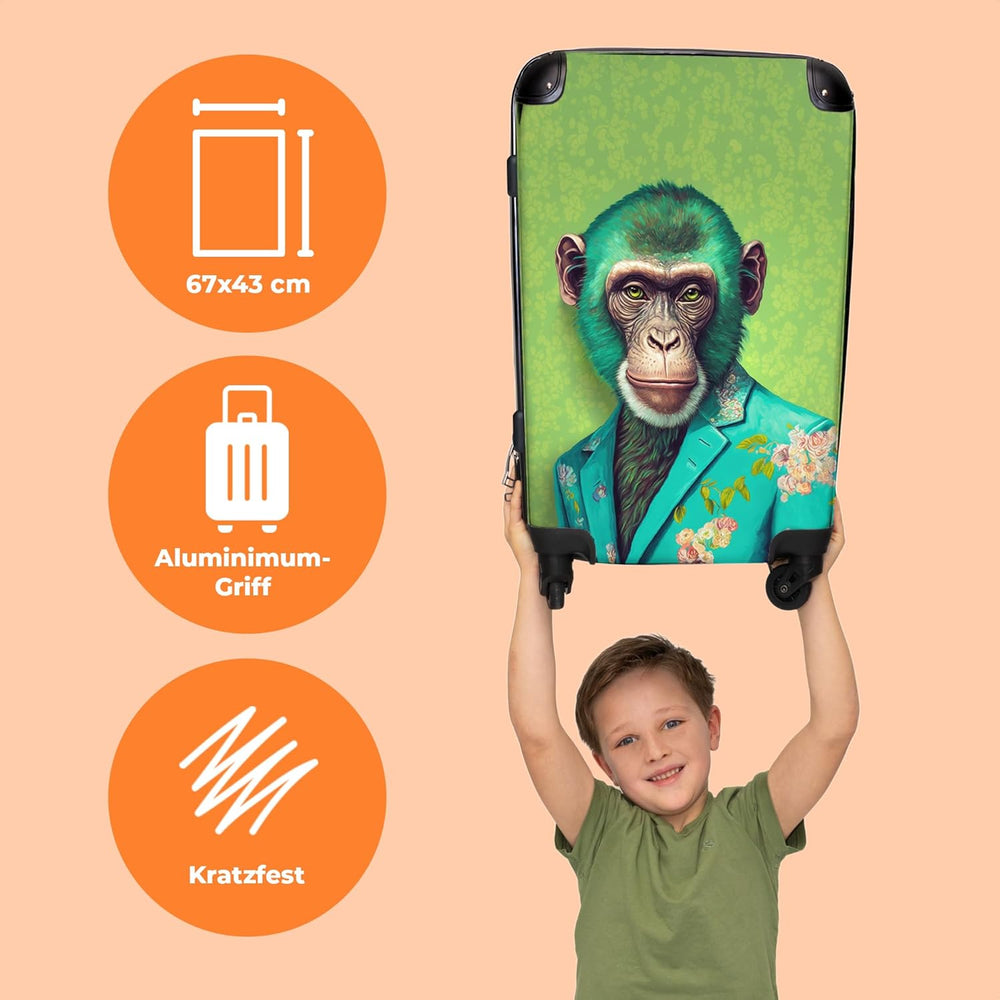 Koffer gross Trolley Rollkoffer Reisekoffer mit 4 Rollen Fotokoffer - AFFE - Bluse - Grün - Porträt