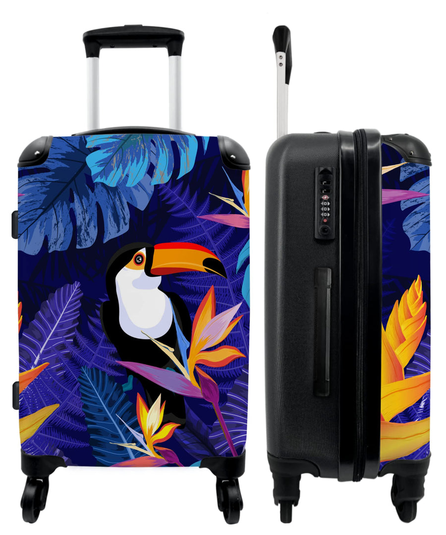 Koffer gross Trolley Rollkoffer Reisekoffer mit 4 Rollen Fotokoffer - Dschungel - Tukan - Blumen - P
