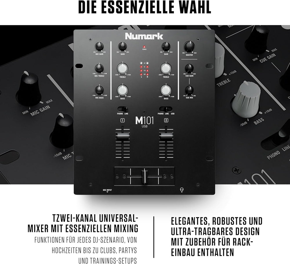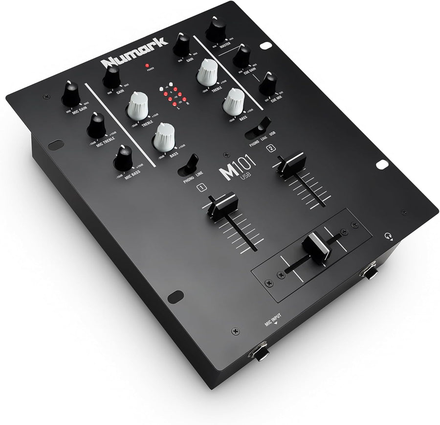 Numark M101USB - 2-Kanal DJ-Mixer, Rack-montierbar mit 2-Band EQ, integriertem Audio Interface, Mikr