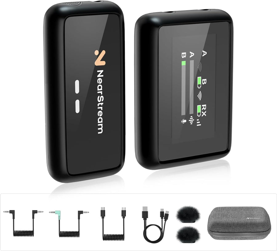 NearStream AWM20D Lavalier Mikrofon Wireless mit Geräuschunterdrückung, HD LCD-Bildschirm/200m Übert