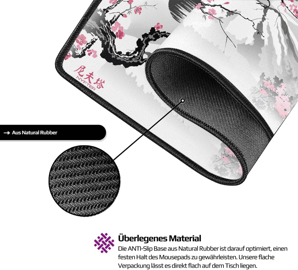 Nyfter - Premium Sakura V3 Gaming Mousepad XXL + 3XL Mousepad Nyfpad XXL Mousepad wellenfrei mit ext