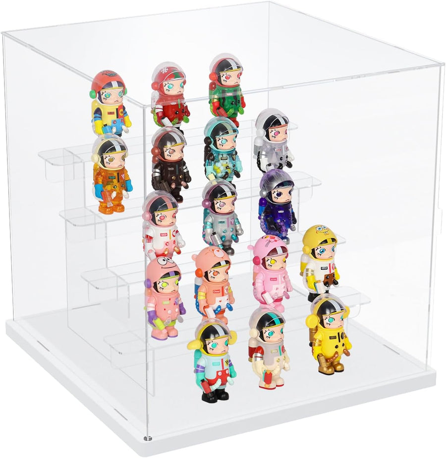 Nynelly Vitrine für Sammler, Vitrine aus Acryl für Figuren, transparente Acrylbox mit weisser Basis,
