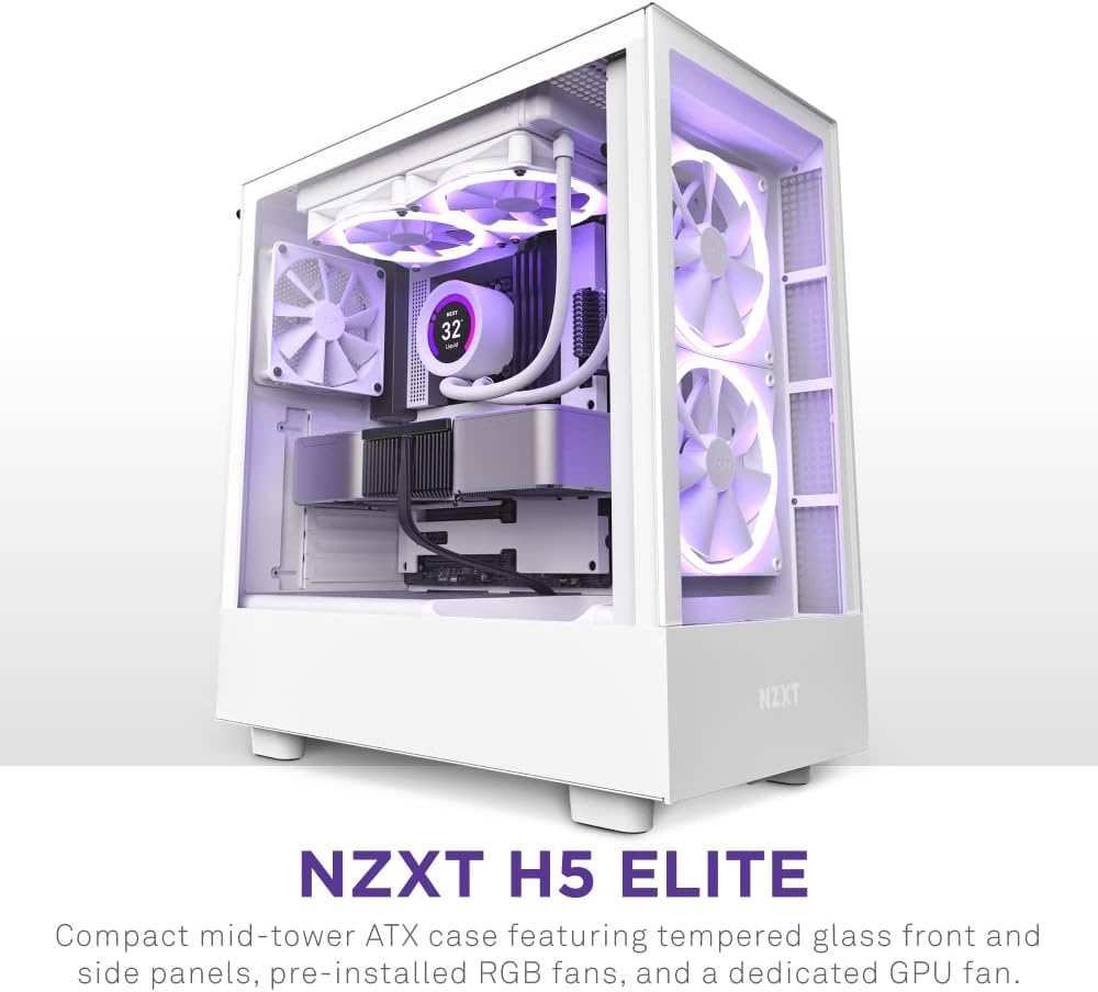 NZXT H5 Elite - CC-H51EW-01 - Premium ATX Mid-Tower PC Gaming Gehäuse - Dual Tempered Glass Fenster