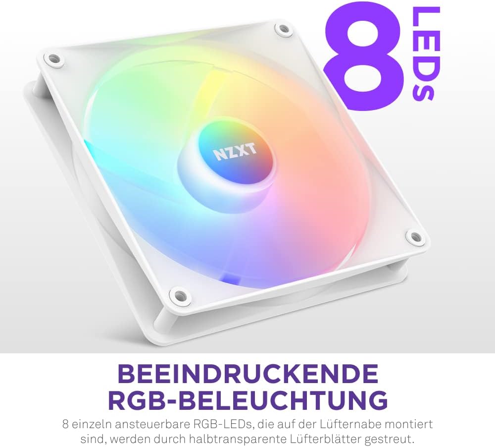 NZXT F120-RGB-Lüfter — RF-R12TF-W1 — Erweiterte Anpassung der RGB-Beleuchtung — Flüsterleise Kühlung