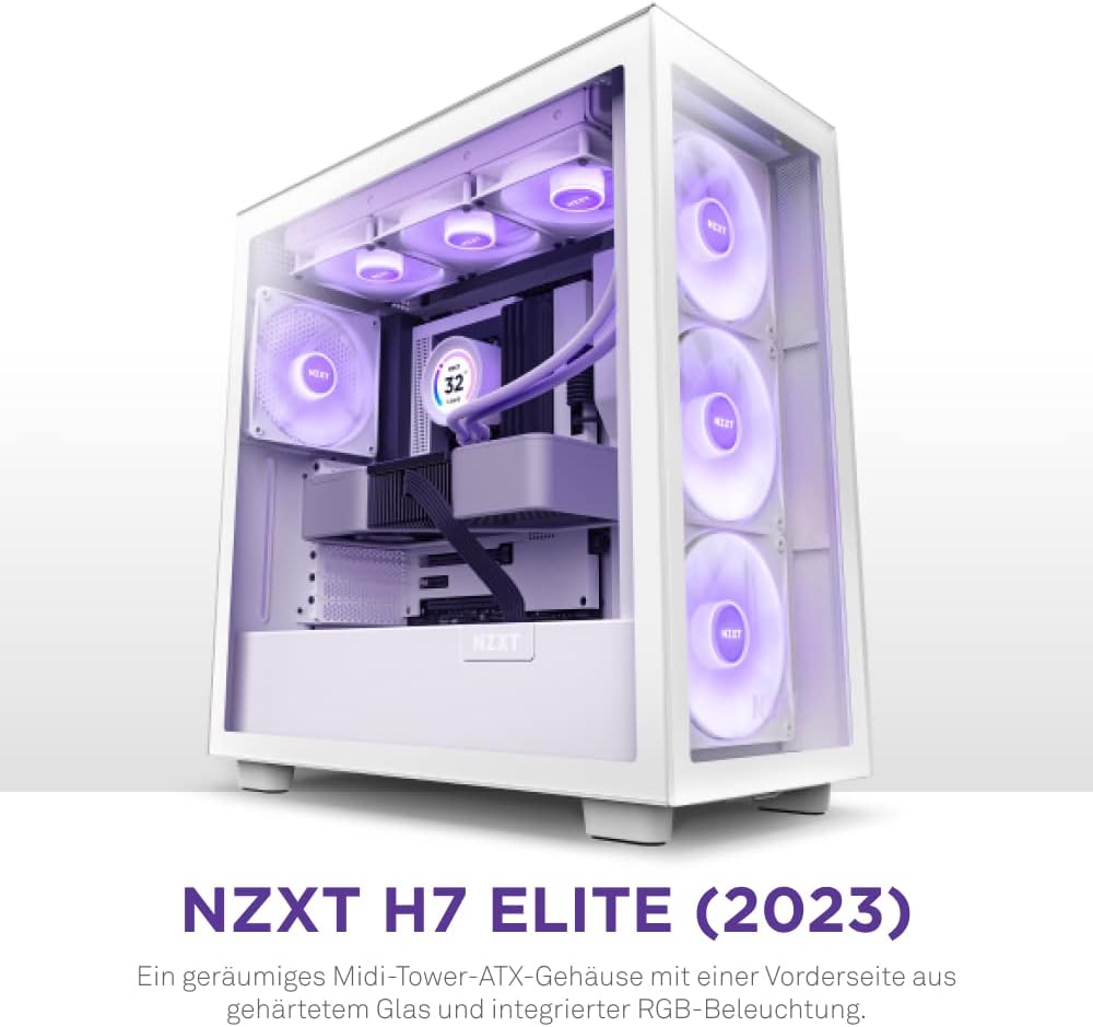 NZXT H7 Elite 2023 - CM-H71EW-02 - ATX Mid-Tower Gaming PC-Gehäuse - USB-C Port - Tempered Glass Fro