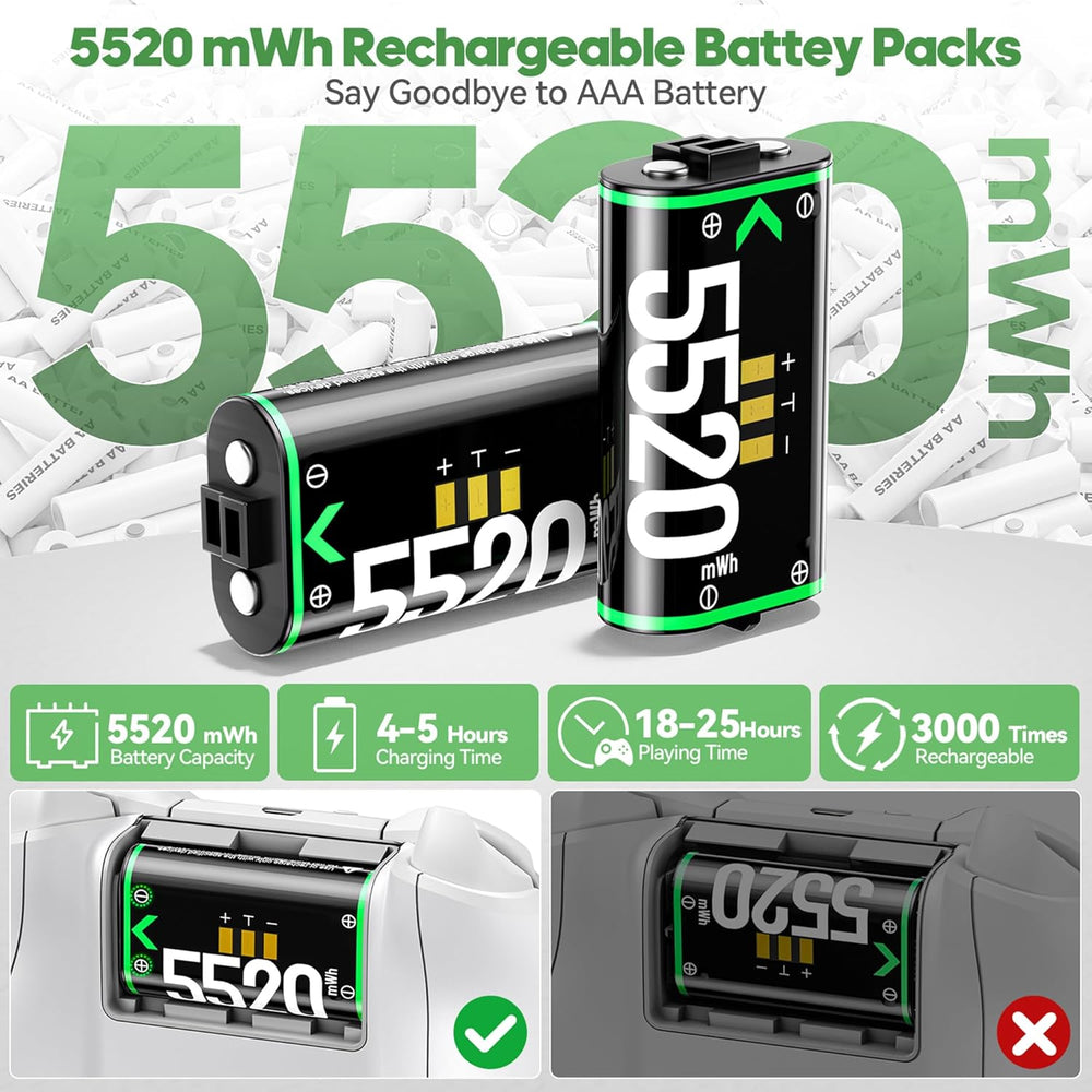 Xbox Controller Ladestation mit 2X 4800mWh (2X 2000mAh) Wiederaufladbaren Akku für Xbox One/Xbox Ser