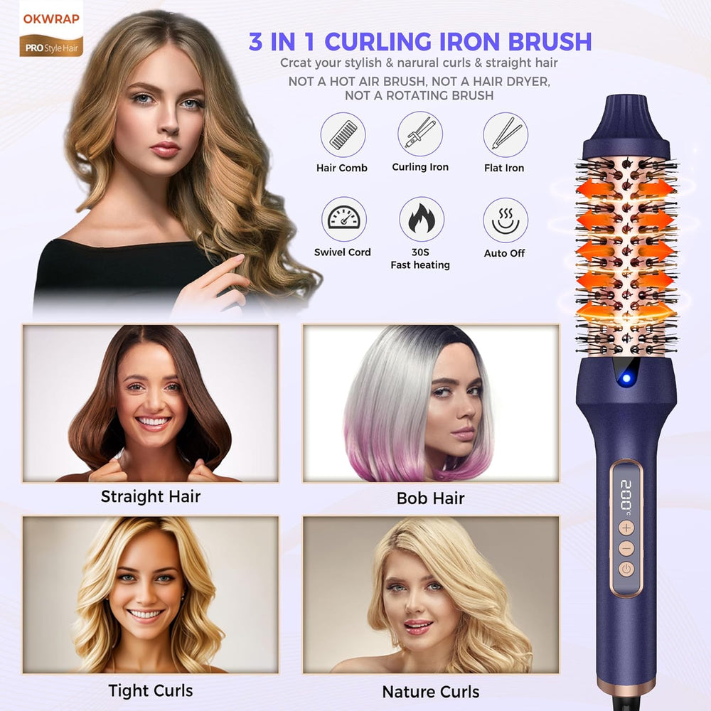 Thermal Brush, 3 en 1 Thermobürste Rundbürste, LED Hot Brush Rundbürste, Locken Bürste mit 120–200 ℃